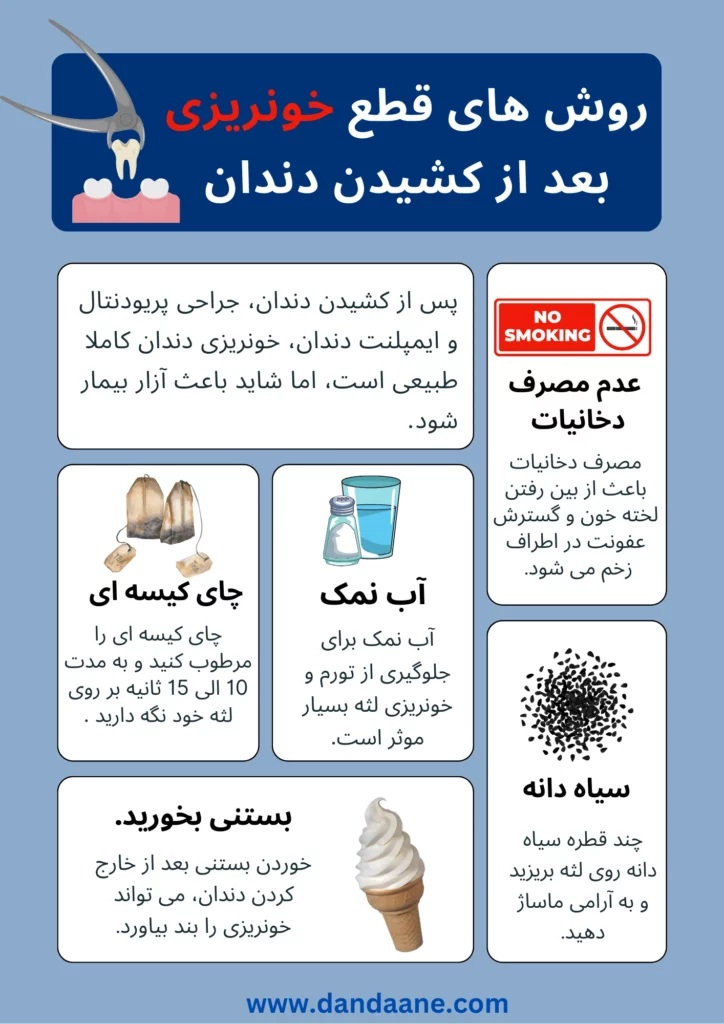 از جمله روش های درمان خانگی خونریزی بعد از کشیدن دندان عبارتند از:
